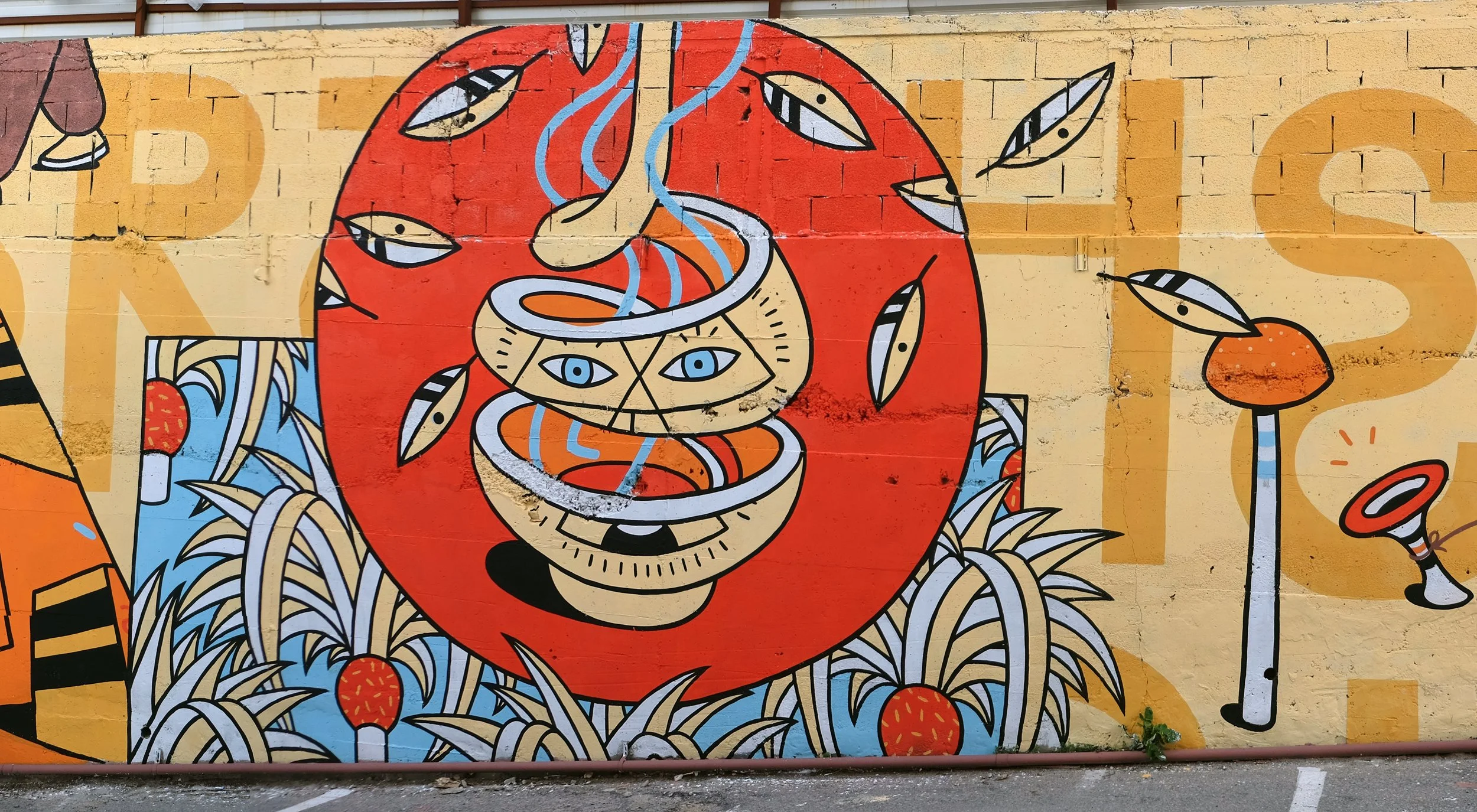 “Trip with us” - recent wall we’ve painted in Talpiot, Jerusalem. Swipe left to see the whole length. Photos by @kid_aroke . Thnx @nuka987 for making it real.
